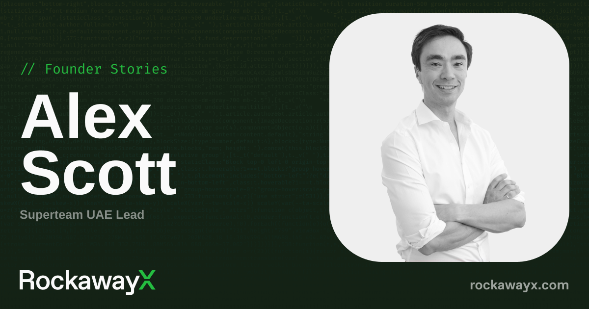 Alex Scott’s journey to leading Superteam UAE began with firsthand experience as a founder. Not long before the start of the last bear market, he had already built and raised venture funding for his own company, while at the same time, was relocating to the UAE without having any local connections.