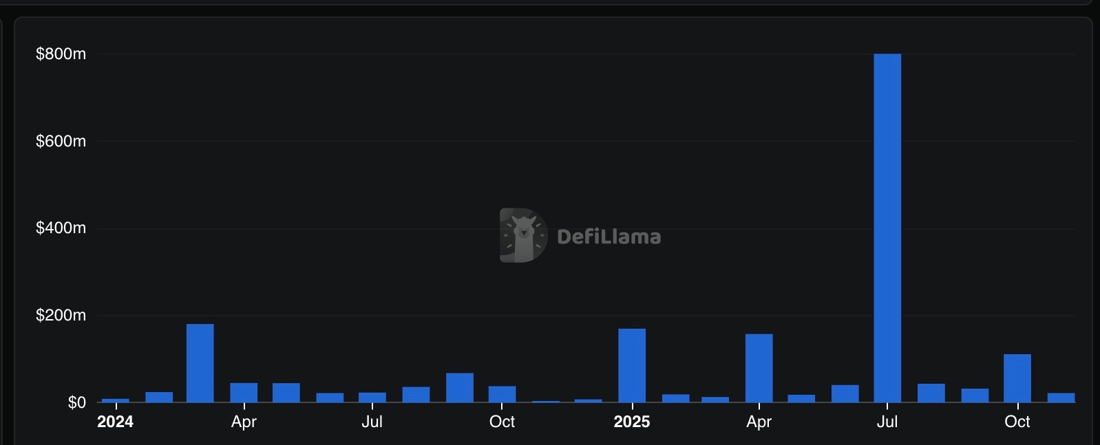 This traction is also evident in the yearly trading data. So far in 2025, Solana has processed roughly $1.36 trillion in DEX volume, comfortably ahead of Ethereum’s $900 billion. Building on that momentum, the same teams driving Solana’s resurgence are now showing measurable results onchain. Among them is Meteora, recording over $80 billion in DEX volume these past three months. Alongside Meteora, HumidiFi has been peaking near $40 billion in DEX volume for the month of October, channeling retail and meme-driven activity into sustained onchain volume. Raydium and Orca remain foundational as well, each generating over $20 billion in monthly trading volume in October.