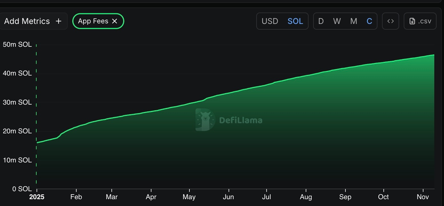 Solana's application-level fees have continued to rise through 2025. This trend is a sign that users are engaged and that developers are creating compelling enough products/services to keep them on the chain.