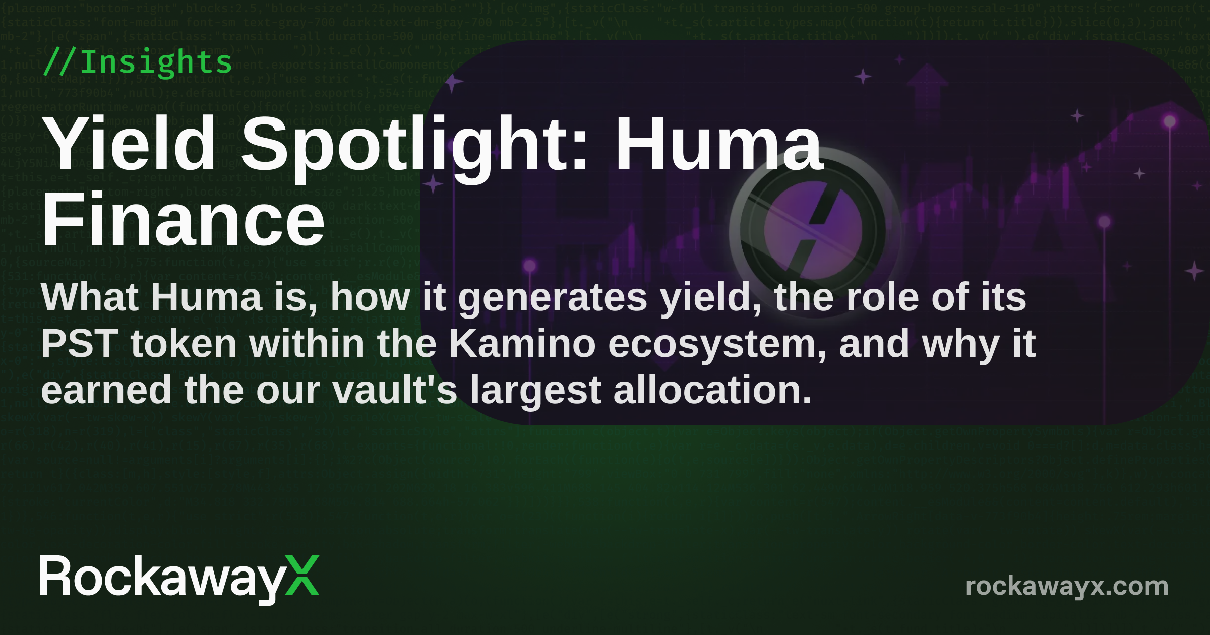 In this spotlight blog, we examine what Huma is, how it generates yield, the role of its PST token within the Kamino ecosystem, and why it earned the vault's largest allocation.